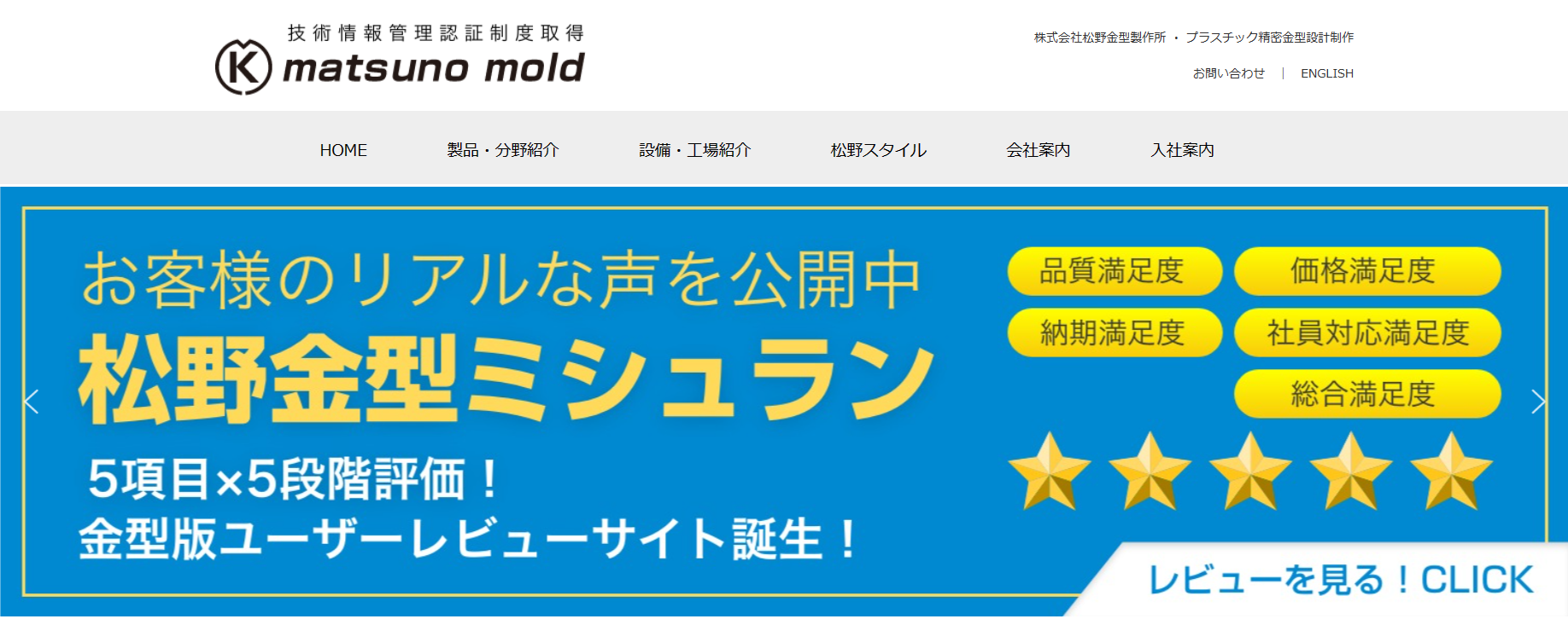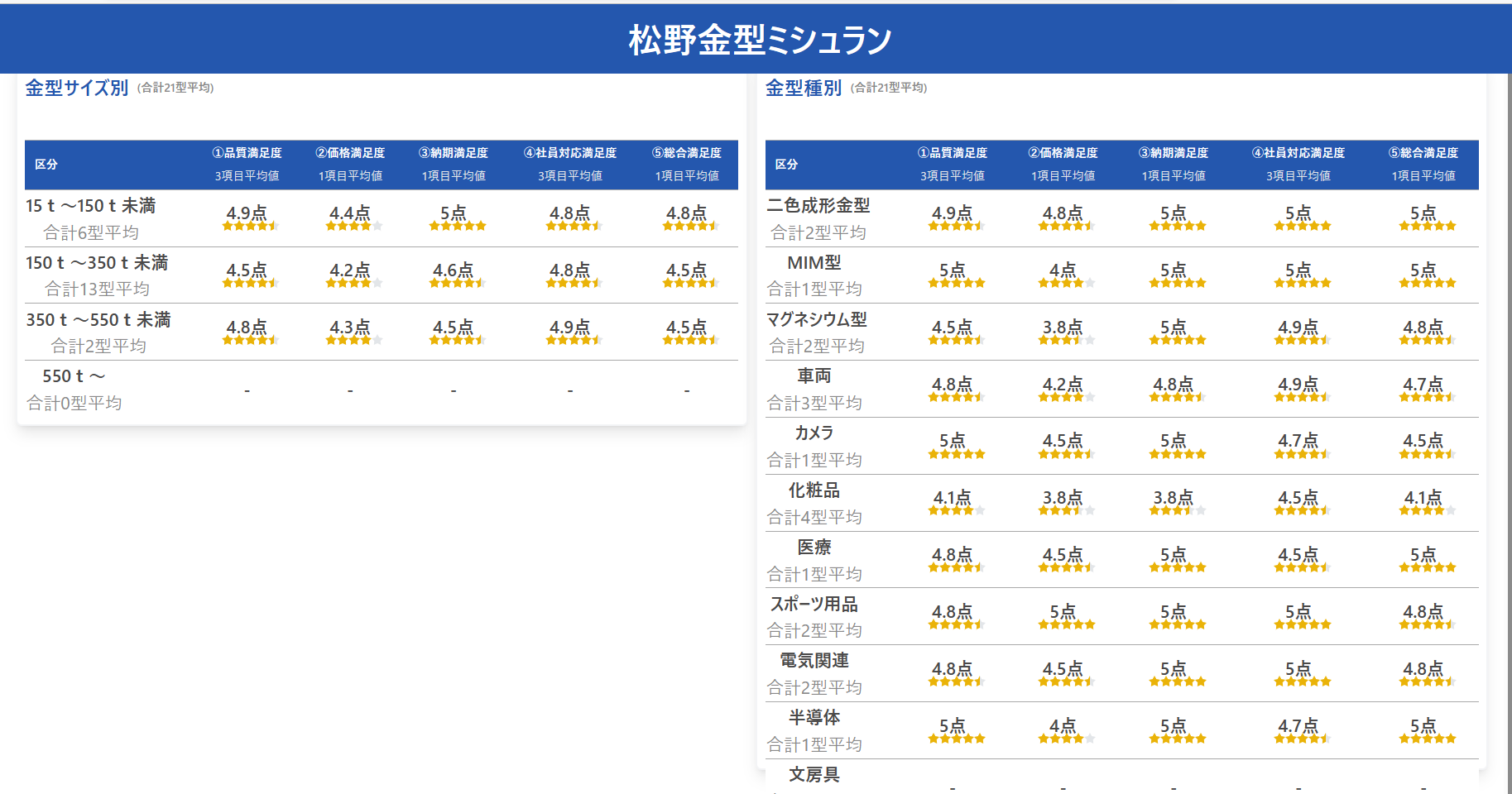 【お客様からのリアルな評価を公開!】金型の発注先選びに貢献する松野金型製作所独自の評価システム「金型ミシュラン」公開しました!