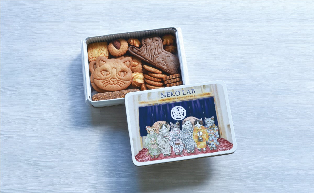 日本橋三越本店×NEKO LABコラボクッキー缶ならではの風情のあるデザイン。