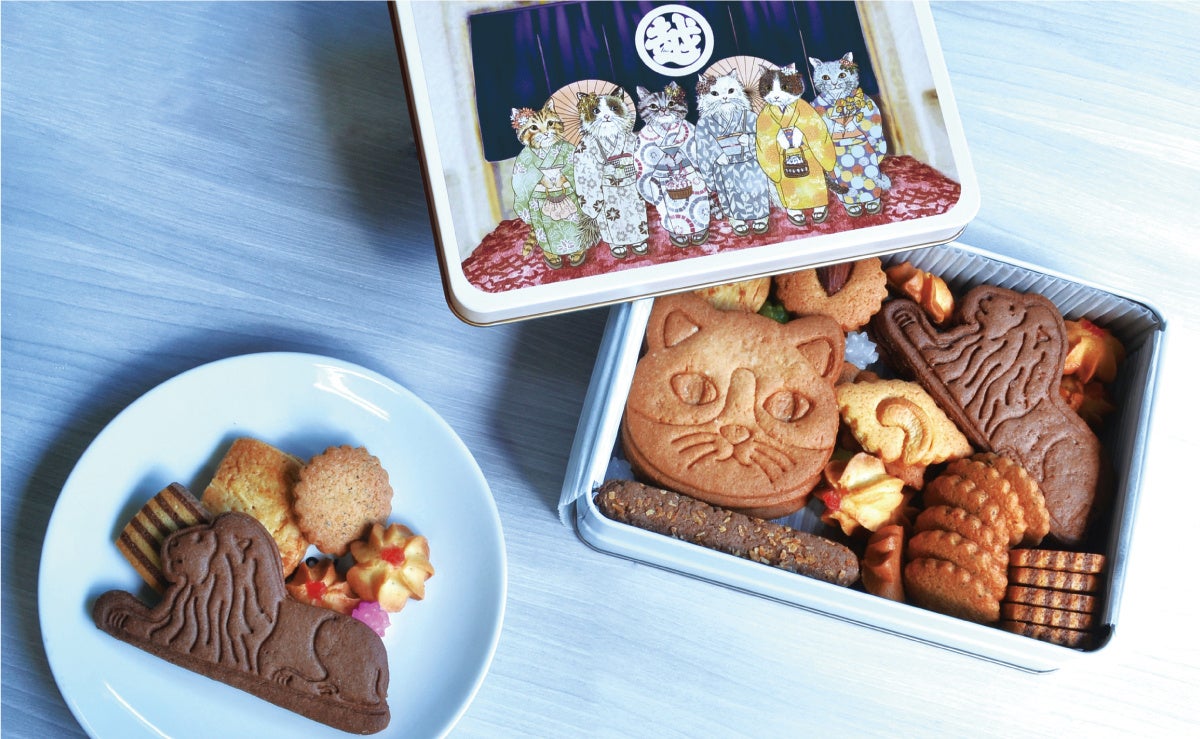 猫の可愛らしさを余すことなく表現したクッキー缶を中心に