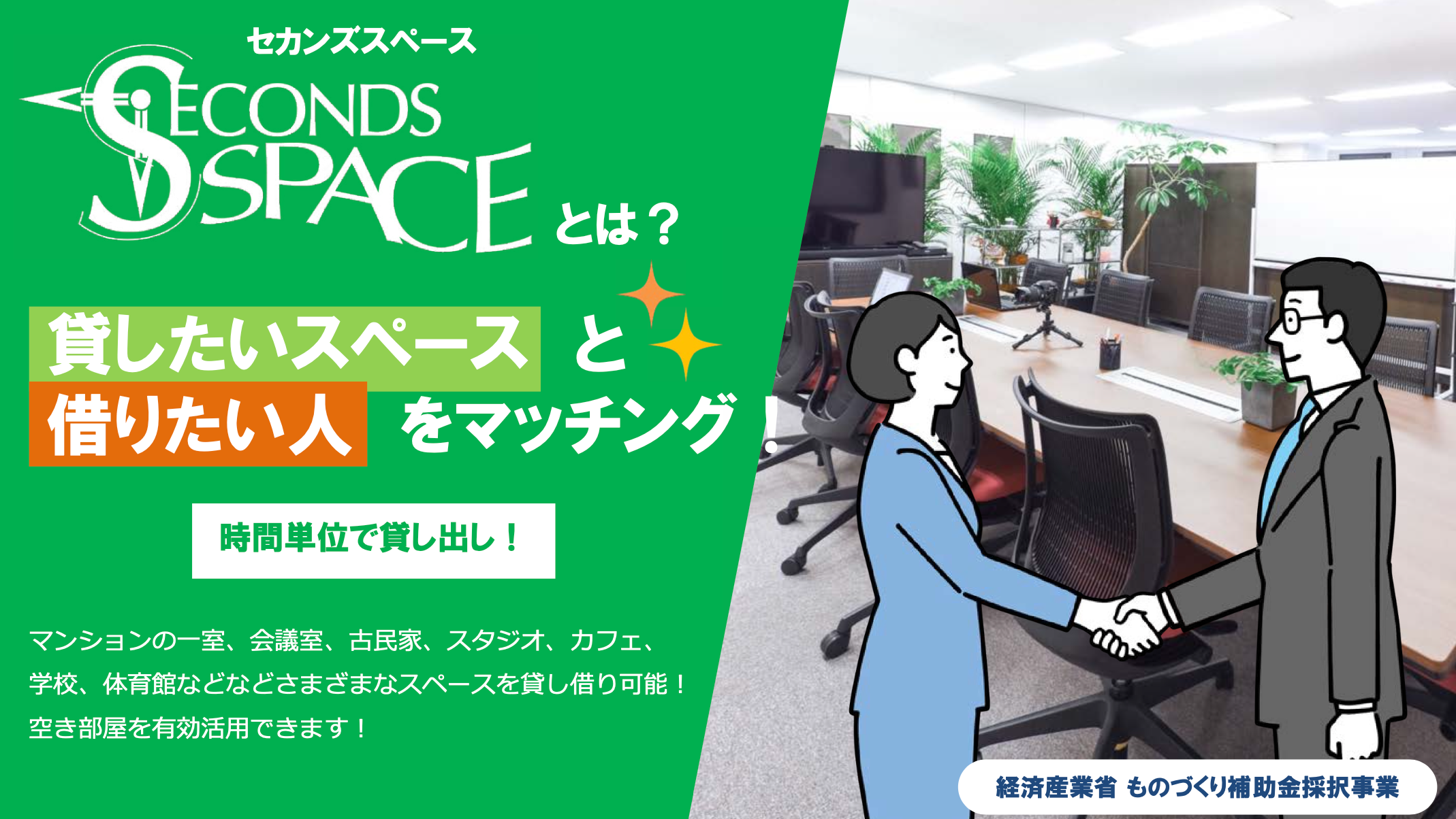 そんな中「レンタルスペース」の予約サイトとして業界初(※1)の「浜松市」に特化したレンタルスペース予約サイト「セカンズスペース浜松」がオープンしました!(経済産業省、中小企業庁「ものづくり補助金」採択事業)