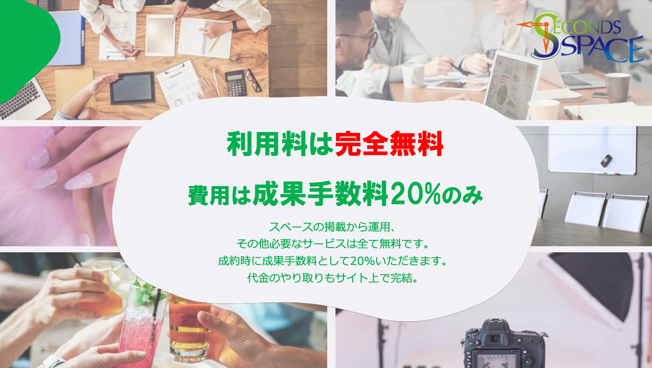 「セカンズスペース」は、このようなシーンで使える「レンタルスペース」を、ちょっとした時間で「今すぐ秒(Second)で借りたい!」という発想のもと誕生しました。