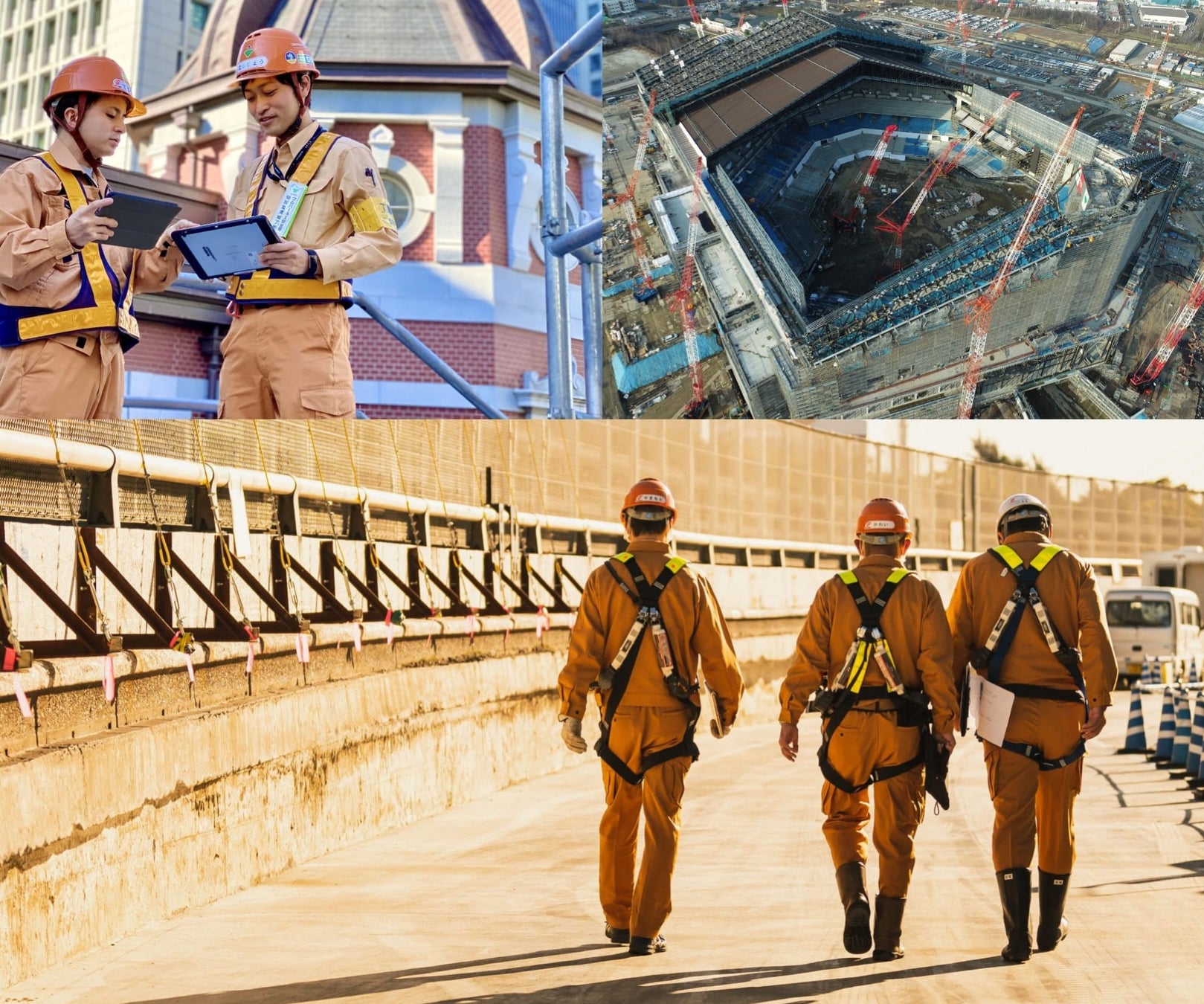 大林組の建設現場では、数百、時には千を超える人々が働いています。学生生活の中で、学びとして材料工学や設計には触れる機会が多いものの、仮囲いされた建設現場の中で実際にどのようなものづくりが行われているか目の当たりにすることは少ないと思います。