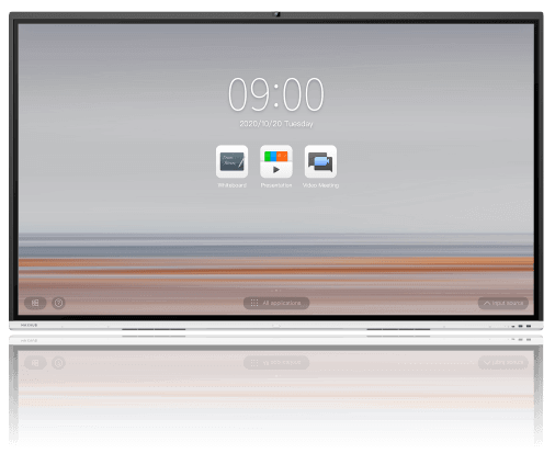MAXHUBとは、PCモニターやホワイトボードにかわる会議室の設備機器として近年、注目を浴びている製品です。65インチから86インチの大型タッチディスプレイにWEBカメラ・高集音マイク・高性能スピーカー及びWindows OSを搭載したStand-alone、All-in-one型のミーティングボードです。MAXHUB1台で電子ホワイトボード機能、オンライン会議機能、プレゼンテーション機能を利用することができます。