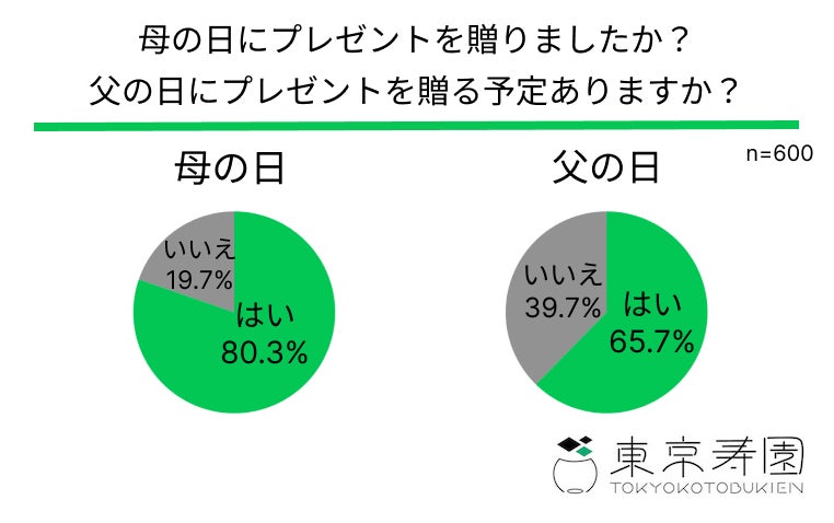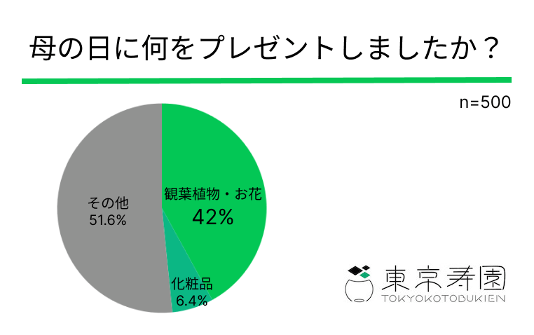 観葉植物やお花メディア「東京寿園(https://tokyo-kotobukien.jp/blogs/magazine/)」を運営する株式会社東京寿園(東京都渋谷区、代表取締役 來住樹生)は、お花を購入したことがある方を対象に、「母の日・父の日」のプレゼントに関してアンケート調査を行いました。