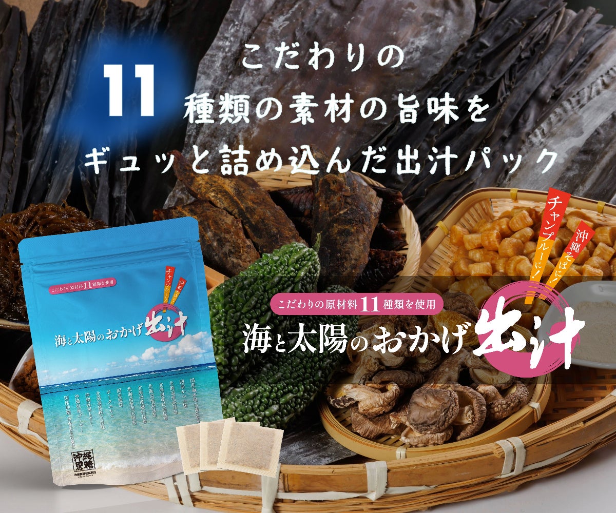 RBC琉球放送×株式会社ジェイシークリエイティヴ シリーズ累計販売130万袋突破の出汁パックに新商品が登場!「海と太陽のおかげ出汁」