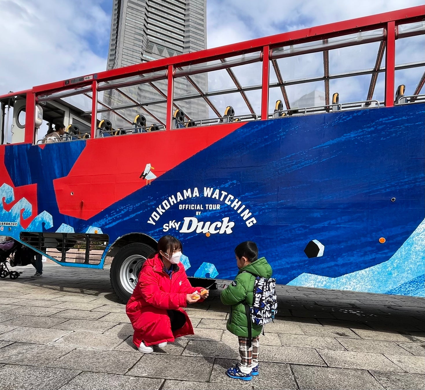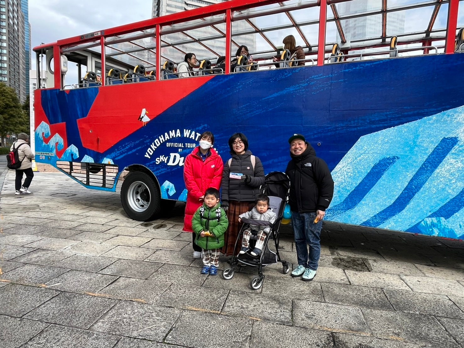 息子の夢を叶えて頂き、ありがとうございました。受賞したときは驚きました。乗り物好きの息子は、初めて乗る水陸両用バスに喜んでいました。特に、バスから船に変わって入水するときは水しぶきが上がって、迫力があり、息子は興奮していました。その日大桟橋に停泊していた豪華客船を海から眺めることができました。船に乗ったからこそできた経験でした。このような機会を作って頂き、ありがとうございました。