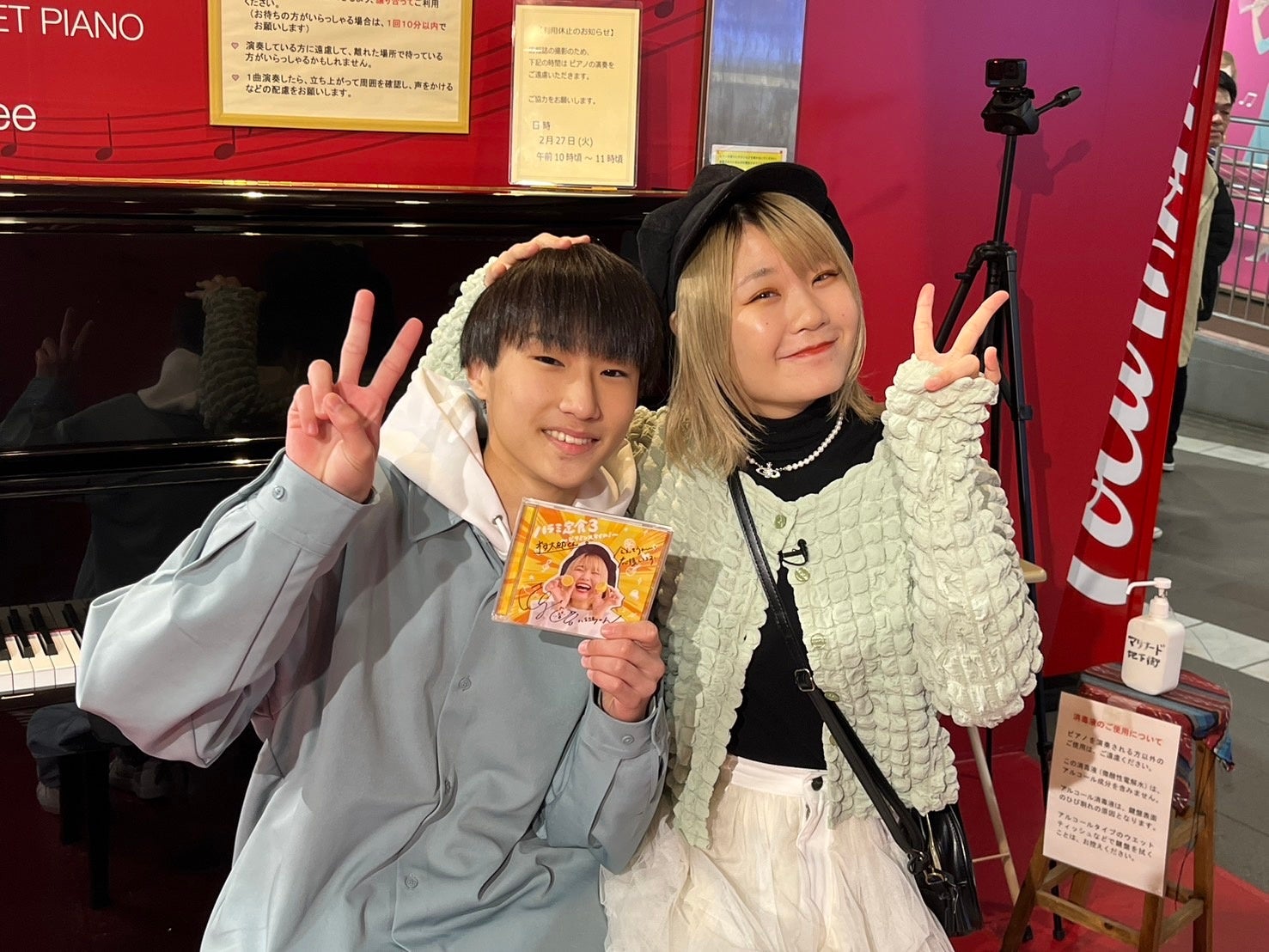 突然のドッキリ!で本人も固まってました。ハラミちゃんと一緒にピアノを弾いている姿は、私の一生の宝物にもなりました。その後ストリートピアノに行くたび、このような場所がある事に感謝をしながら、また、後ろをキョロキョロ気にしながら弾くようになったとの事です。この度は、息子の夢を叶えて下さりどうもありがとうございました。