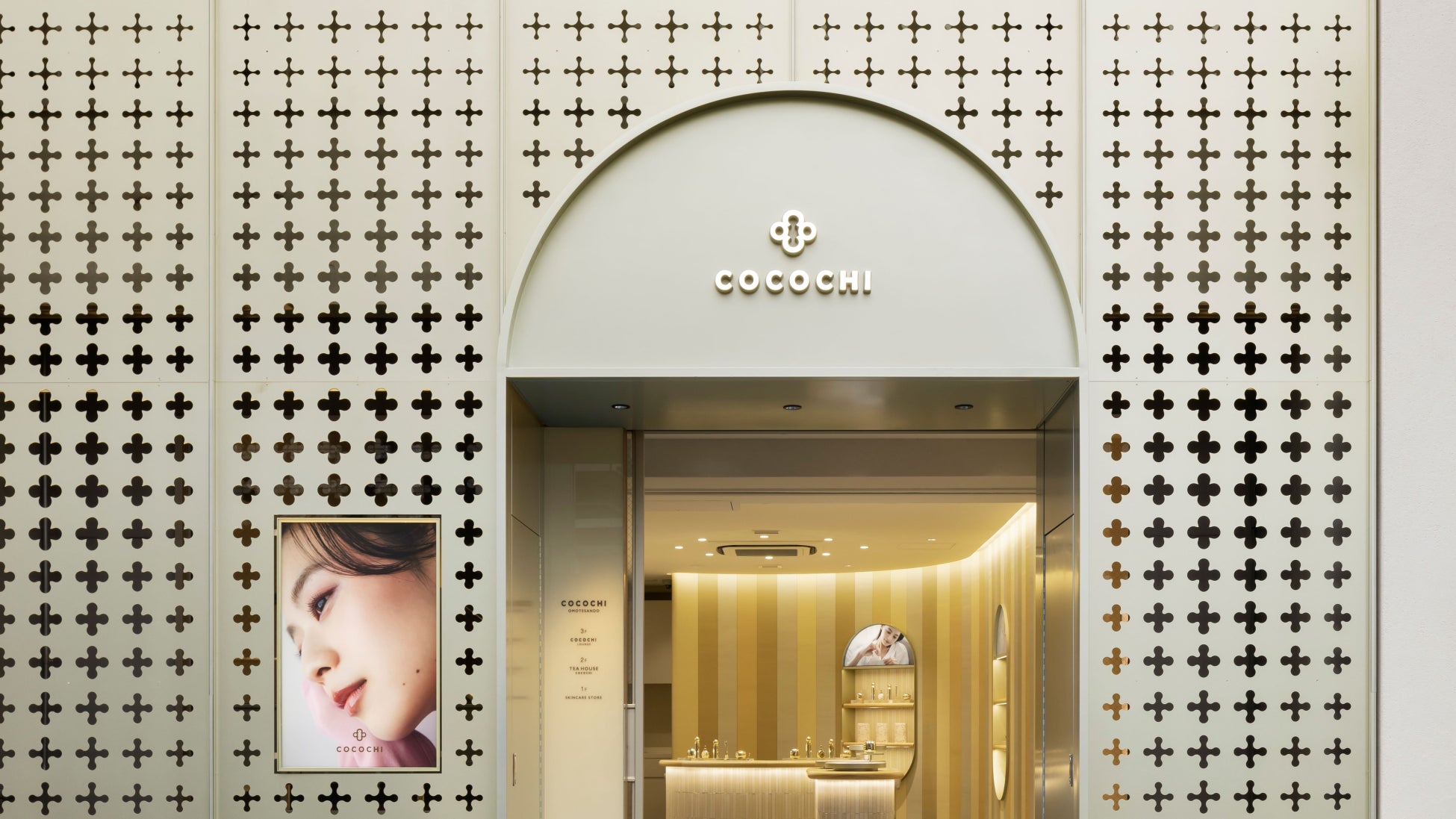 COCOCHIのスキンケア全製品のタッチアップができるスキンケアストアをはじめ、日本の文化を色濃く表すお茶を中心に季節の甘味を愉しみながら、カラダの内側からも抗糖化を意識するティーハウス。さらに、心からリラックスすることにより、自分自身の心地よさに向き合うことのできるラウンジと、COCOCHIの想いを五感を通して体感することのできる、ブランドのフラッグシップストアが誕生しました。