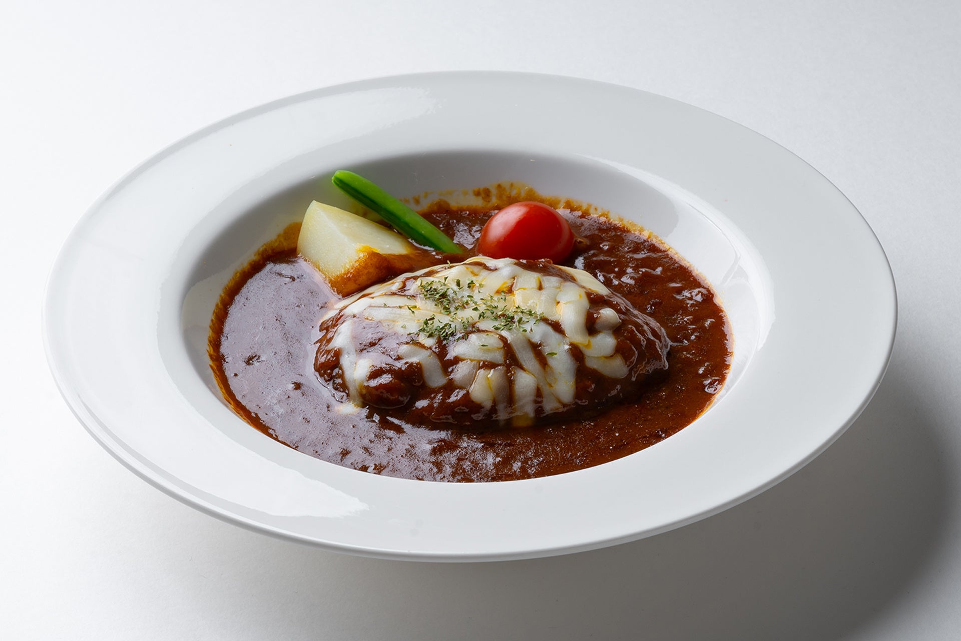 ハンバーグには食感のアクセントとして、牛すじ、鶏軟骨を使用し、小麦粉やパン粉を使わず、米粉を使用することで、グルテンフリーになっています。ソースは玉ねぎをふんだんに入れることによって甘味と旨味を引き出し、赤ワインでコクとさわやかさを演出しています。ハンバーグにジャブジャブ付けて食べたくなるソースに仕上げました。