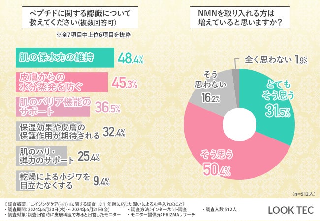 ペプチドの効果は「肌の保水力の維持」、NMNを取り入れる方は「増えている」が約8割