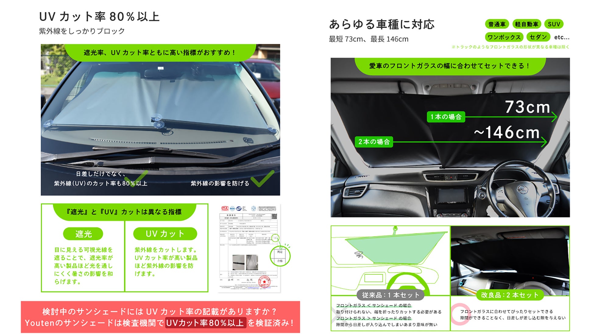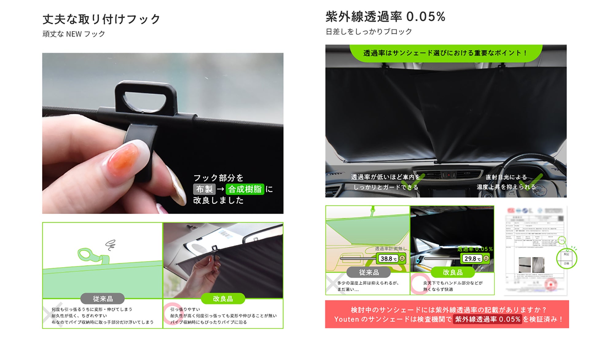 サンシェード未使用者の声を聞き、従来品から改良いたしました。