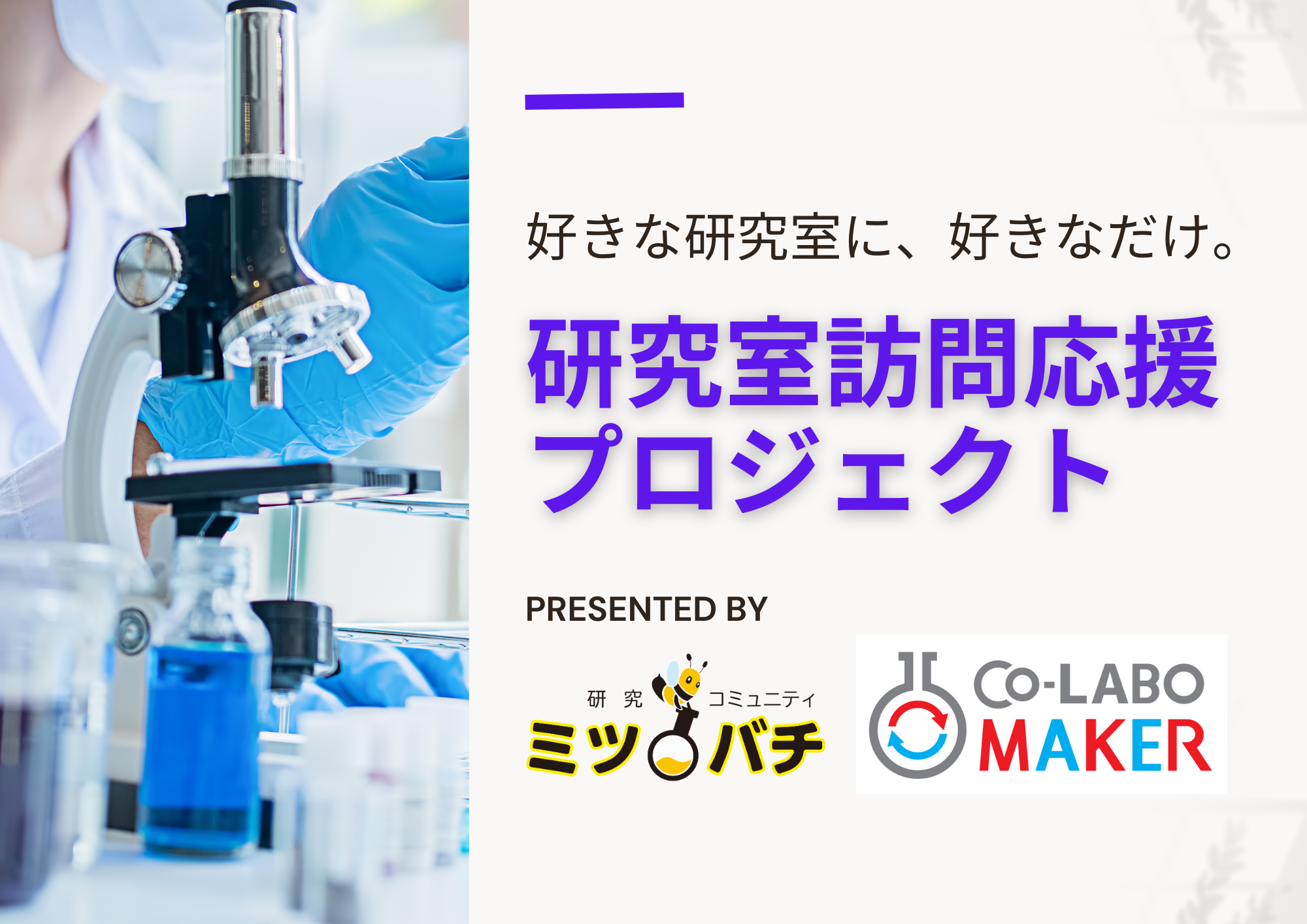 そこで研究コミュニティミツバチと株式会社Co-LABO MAKERが共同で、『好きな研究室に、好きなだけ。』をキャッチコピーとして学生の研究室訪問を金銭的に支援するプログラムを開始しました。
