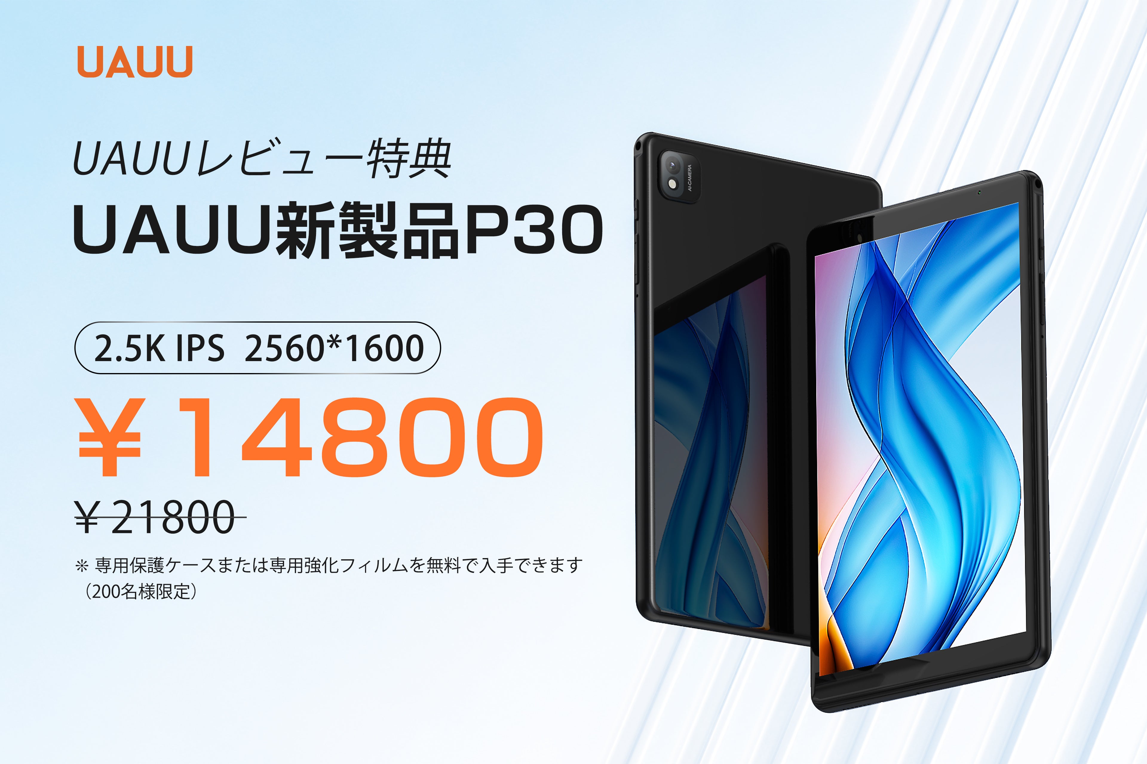 【UAUU新製品P30タブレットレビュー特典】タブレットP30をレビューすると、無料の専用保護ケースまたは専用強化フィルムを入手できます。2023/6/12(月)~7/8(土)23:59まで