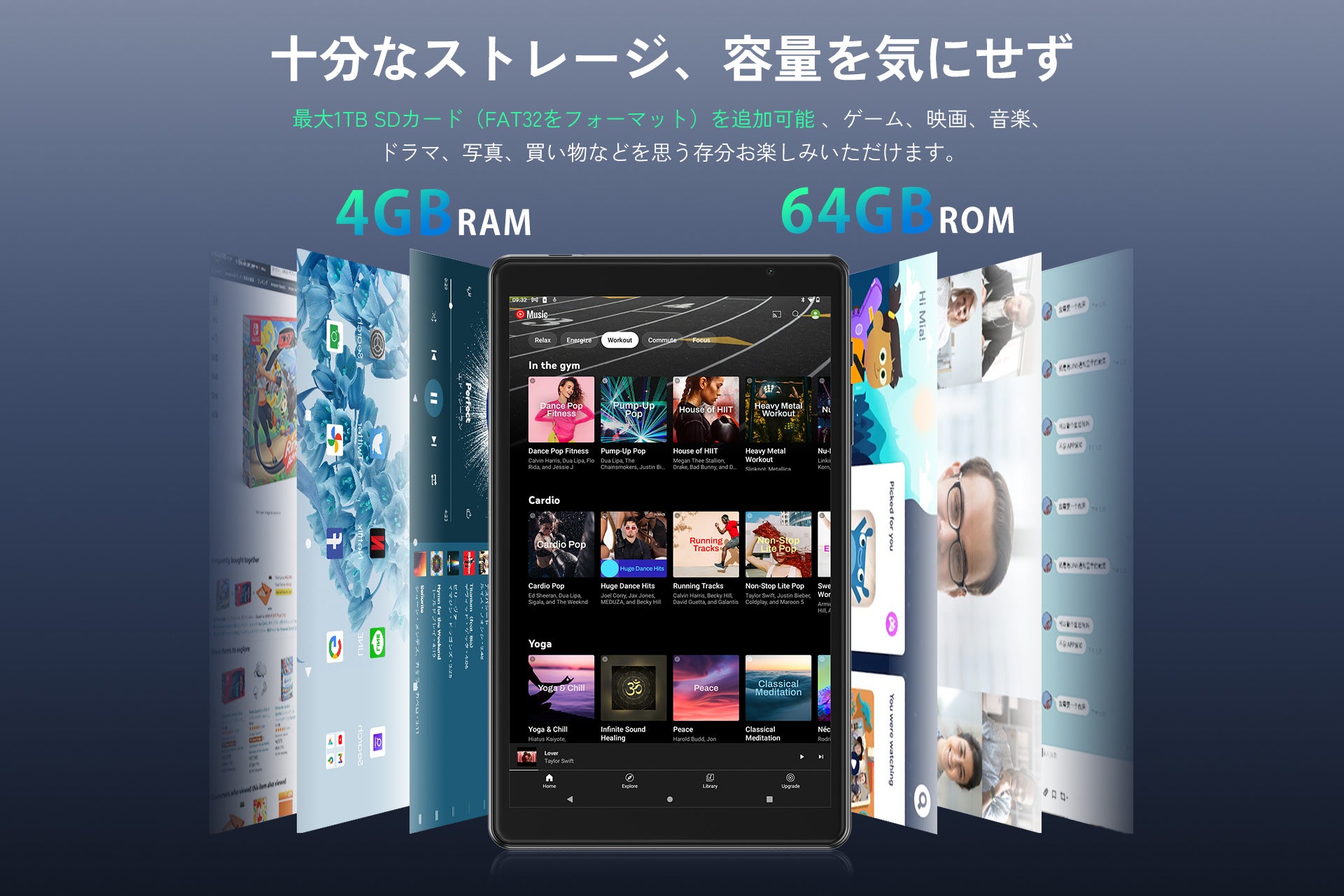 P30 Androidタブレットは、4GBのRAMと64GBの内蔵ストレージを搭載しています。64GBのストレージは、一般的なユーザーにとって十分な容量であり、多くのアプリやファイルを保存することができます。また、MicroSDカードスロットを搭載しているため、最大1TBまでの追加ストレージを使用することもできます。これにより、ストレージ容量の拡張が可能となり、より多くのデータを保存することができます。また、P30タブレットには、3.5mmのヘッドフォンジャックが搭載されており、ワイヤードヘッドフォンやスピーカーを接続して音楽や動画を楽しむことができます。この機能により、様々なニーズに合わせた使用が可能となります。