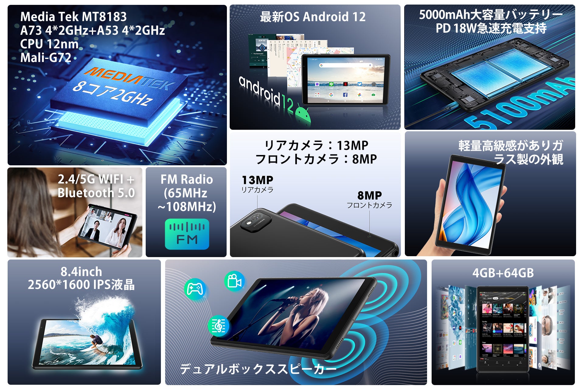 Android 12 / 8.4インチ / 8コア/2.5K高画質IPS Wi-Fiモデル