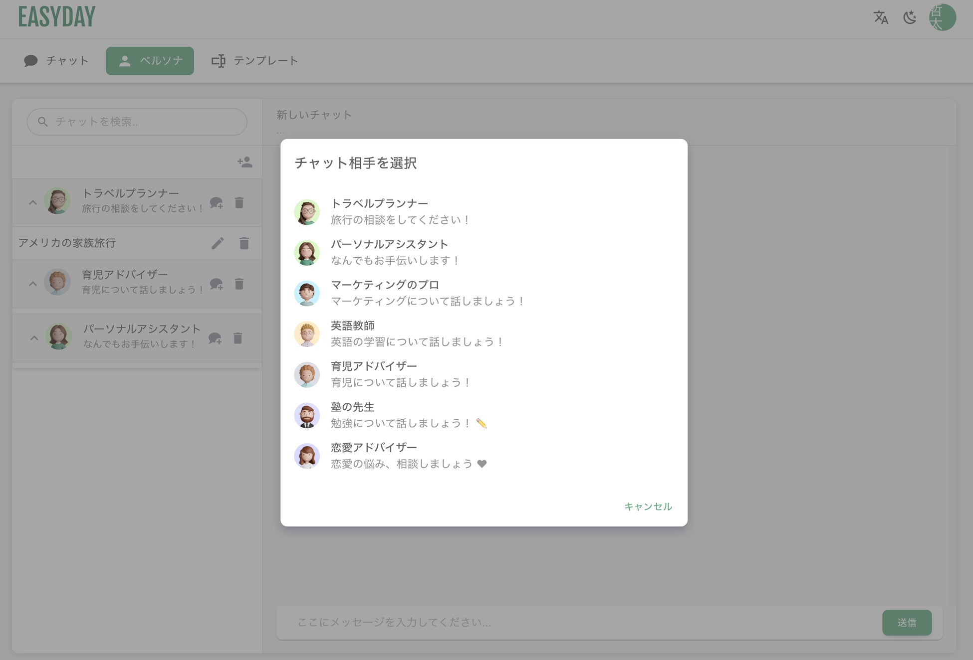 「Easyday」では、ユーザーが選べるチャット相手のペルソナが用意されています。ユーザーは自分に最適なアシスタントを選び、より効果的かつパーソナライズされたアドバイスを得ることができます。