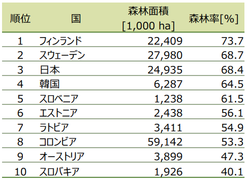 日本の森林は、国土の約7割を占めます。