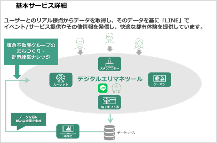 東急不動産HDグループで培った都市運営に関する課題の抽出・解決ノウハウとアクアビット社のIoT技術・デバイスを組み合わせ来街者利便性向上や地域運営データ取得を促進するツールを展開。