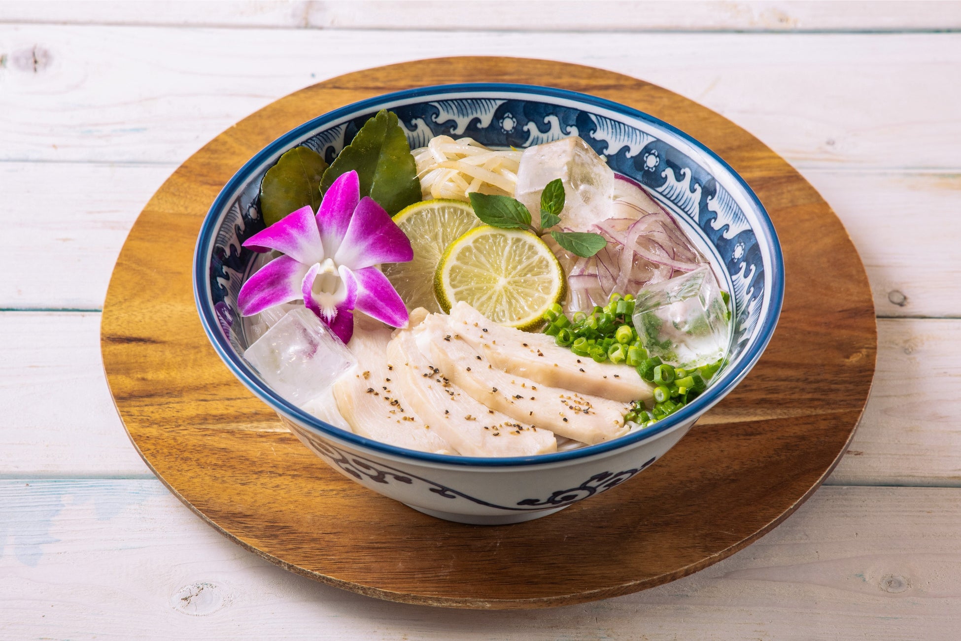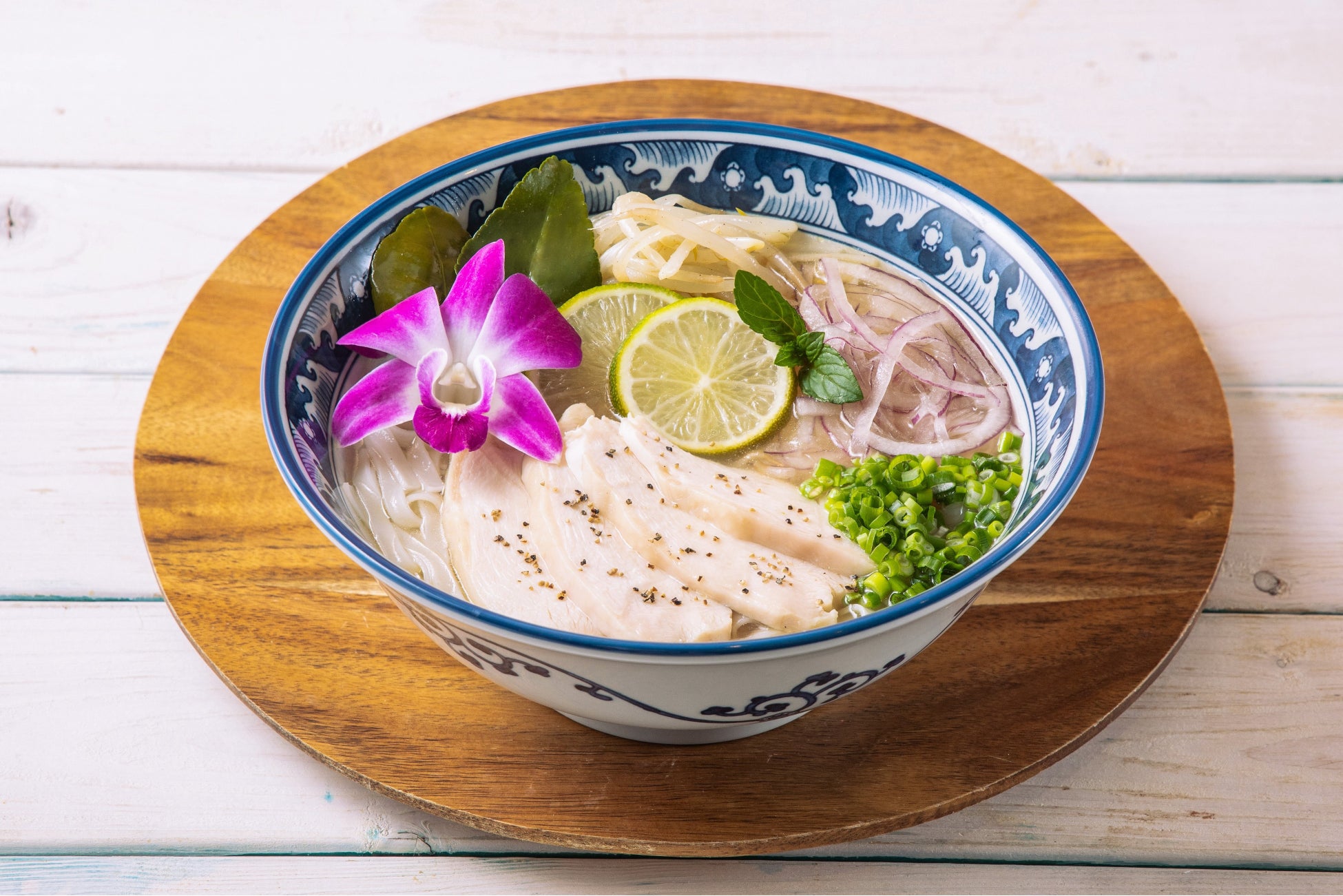 とろみがありしっかりとコクを感じられるオリジナルブレンドスープが、つるつるモチモチのライスヌードルに良く絡み、暑い季節にぴったりな一杯です。