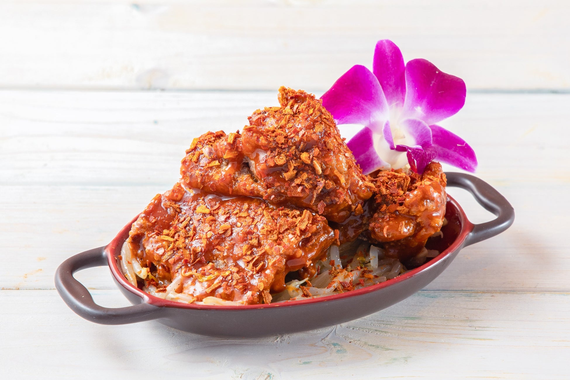 トッピングには、シャキシャキのもやしとレッドオニオンスライス、青ねぎ、仕上げのブラックペッパーが味のアクセントに。ライムのさっぱり感や唐辛子のピリ辛さなど、複雑な味わいをお楽しみください。