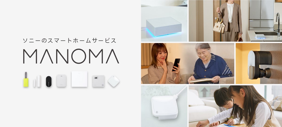 MANOMAは「セキュリティ」、「見守り」、「オートメーション」に家事代行などの「家ナカサービス」を加えた、ライフスタイルに新たな体験価値を提供するスマートホームサービスです。ソニーのIoT機器とスマートフォンを組み合わせることで、思い通りにお家を便利で安心、快適にできます。