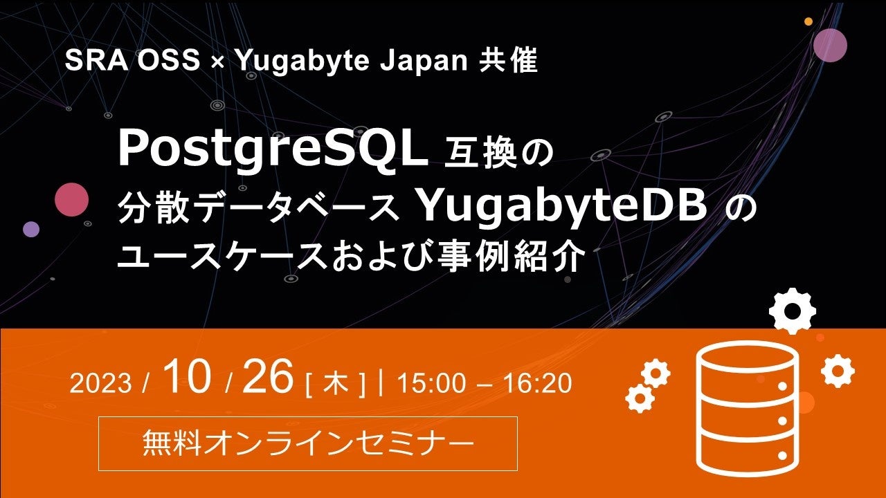 SRA OSS×Yugabyte Japan 「PostgreSQL互換の分散データベースYugabyteDBのユースケースおよび事例紹介」Webセミナー(10月26日開催)