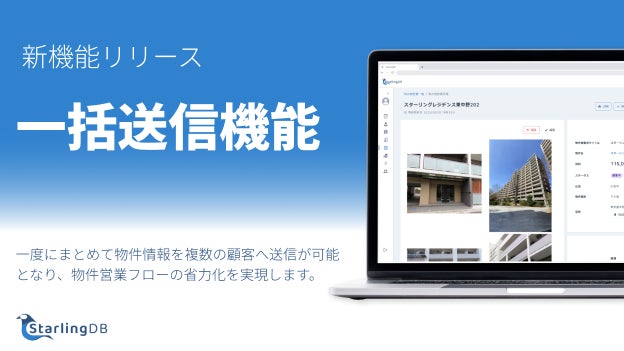 不動産売買営業支援システム「StarlingDB」で「物件情報の一括送信機能」の提供を開始
