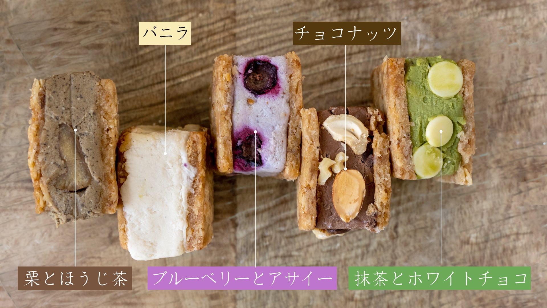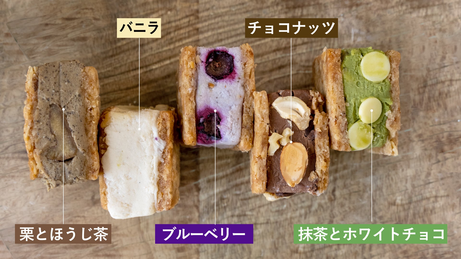今回のMakuakeでは、「栗とほうじ茶・バニラ・ブルーベリー・チョコナッツ・抹茶とホワイトチョコ」をご用意しております。