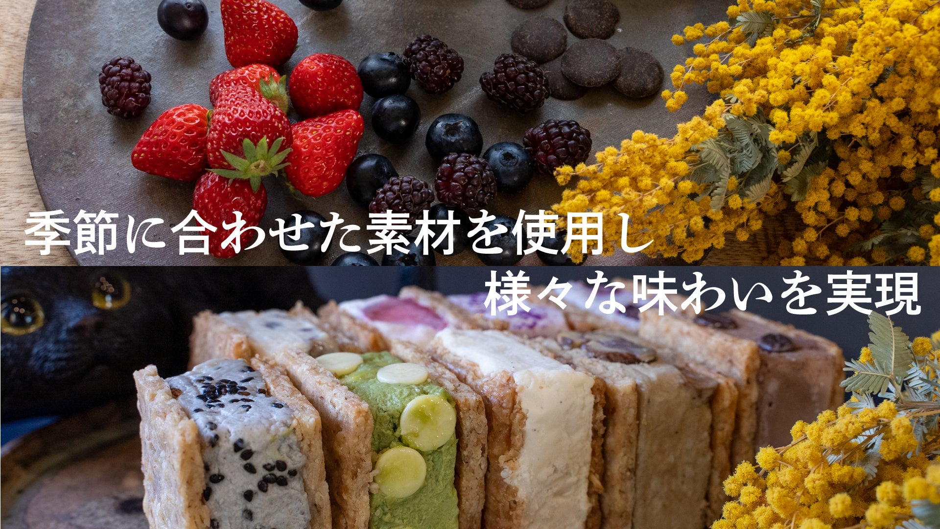 バニラ・チョコナッツ・紅茶・黒ゴマなど定番商品の他にも、季節に合わせたフルーツとしてイチゴやブルーベリー、栗などを使ったものも随時登場します。1年を通して季節や気分に合わせて様々な種類のテイストを楽しんでいただけます!