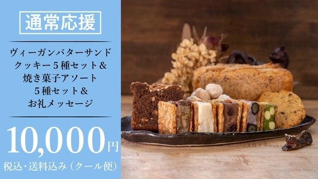 プロジェクト終了後には、支援者には「幸せのヴィーガンバターサンドクッキー」をはじめとする定番5種(バニラ・チョコナッツ・栗とほうじ茶・ブルーベリー・抹茶とホワイトチョコ)を専用ギフトBOXに詰め込んでお届け致します。ほかにも、ヴィーガン焼き菓子アソート付きのリターン品や37cafeでのランチペアチケット付きなどがございます。