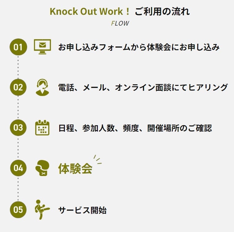 Knock Out Work!ならオフィスでそのままキックボクシング。法人様のウェルビーイングの取り組みとして是非ご検討ください。