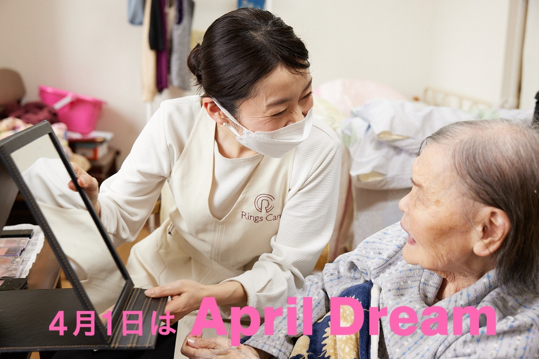 株式会社Rings Care(所在地:東京都中央区、代表取締役:大平智祉緒)は、医療・介護資格をもつリングスケア®︎セラピストによる完全パーソナルな美整容ケア(Rings Care®︎)を首都圏の介護施設を中心に展開しています。当社は4月1日を夢を発信する日にしようとするApril Dreamに賛同しています。