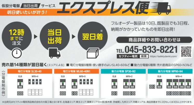 仮設分電盤の当日発送・翌日着サービス “明日使いたい”に応える「エクスプレス便」