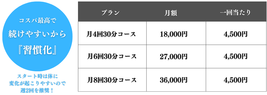 月4回30分コース | 18,000円(税込) エリア最安値! |