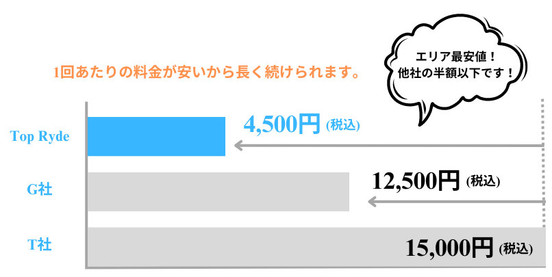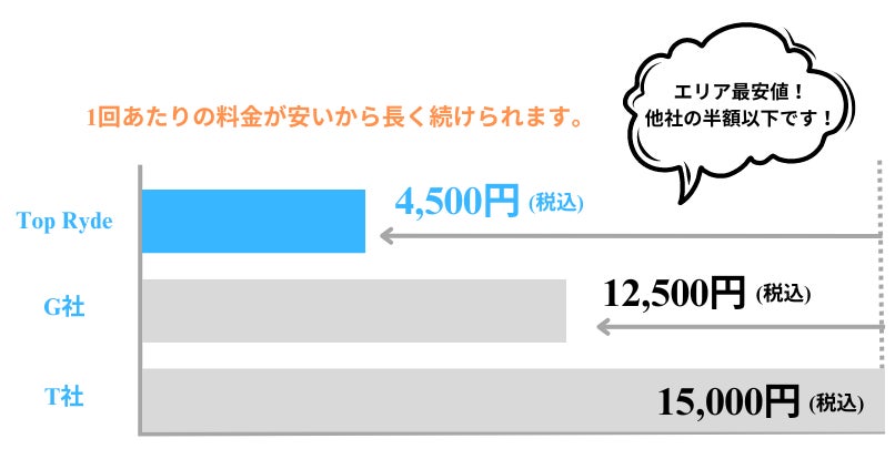 さらに、多くのお客様に支持される点といたしまして、Top Rydeが設定している低価格な料金体系です。これによって多くの人々が負担なくトレーニングを続けることができるため、長期的な目線で健康を促進することができます。月々の通う回数を調整することで、個々のスケジュールや目標に合わせて柔軟にトレーニングを受けることも可能です。