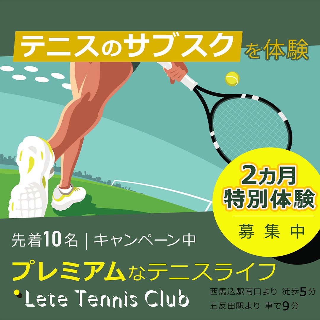 ―仕事もあるけど、もう1度、昔を思い出してテニスをしてみようかな・・・という元テニス女子・男子の皆さまへ。2か月テニスし放題 ¥26,000のプレミアム体験 募集中ー