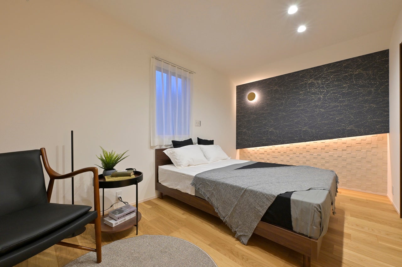 受賞作品では、住宅の室内空間を彩る壁装材、床材、ファブリック(カーテン・椅子生地)等をトータルに扱っております「株式会社サンゲツ」の内装材を効果的に取入れ、住まう人のライフスタイルに合わせたワンランク上の住心地を表現しました。