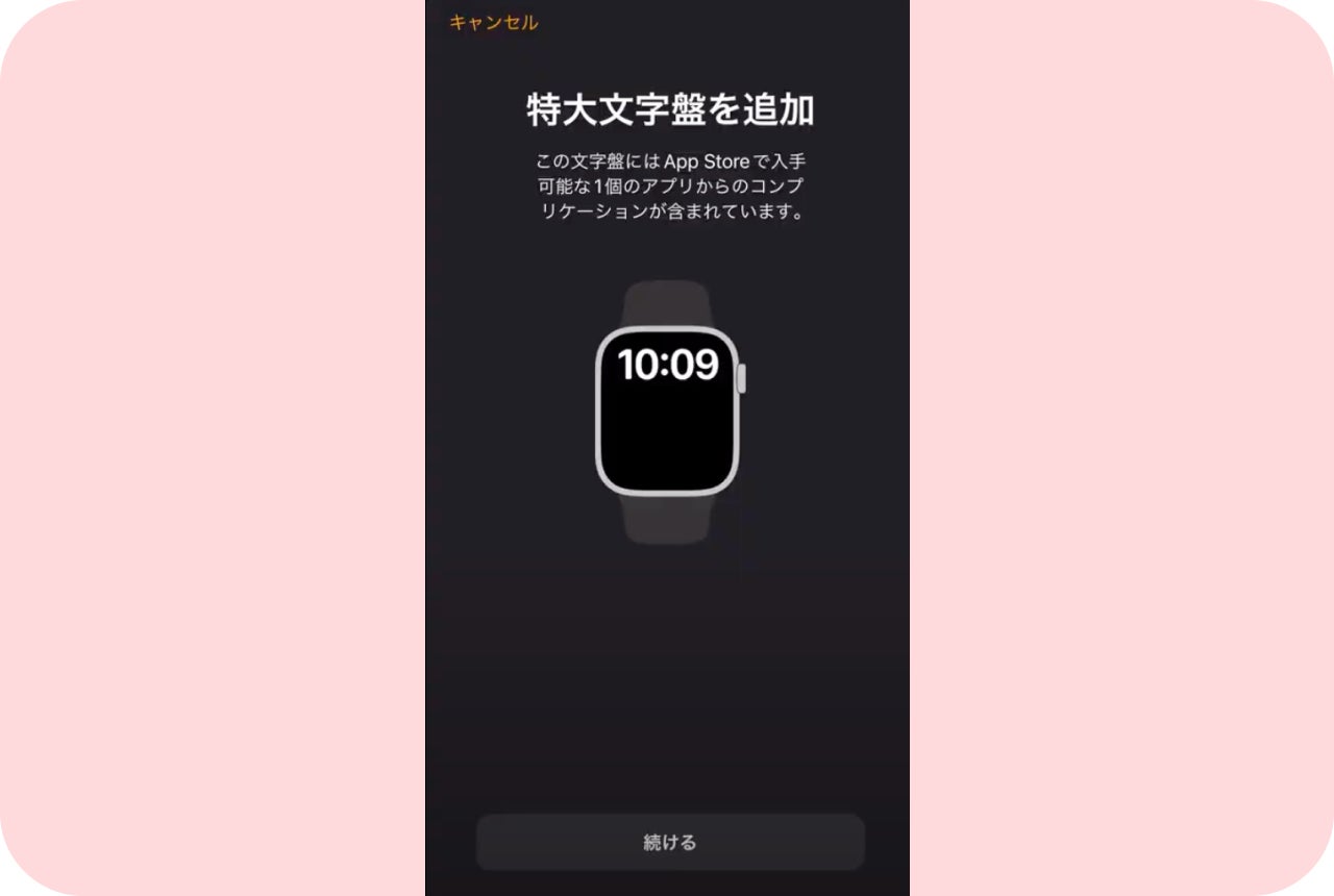 3. 「特大文字盤を追加」と表示されるので「続ける」を選択