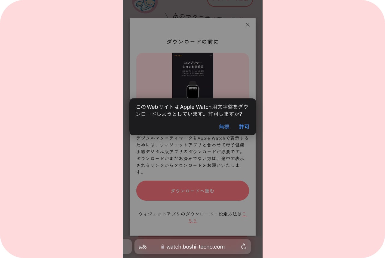 2. 「Apple Watch用文字盤のダウンロード」で許可を選択
