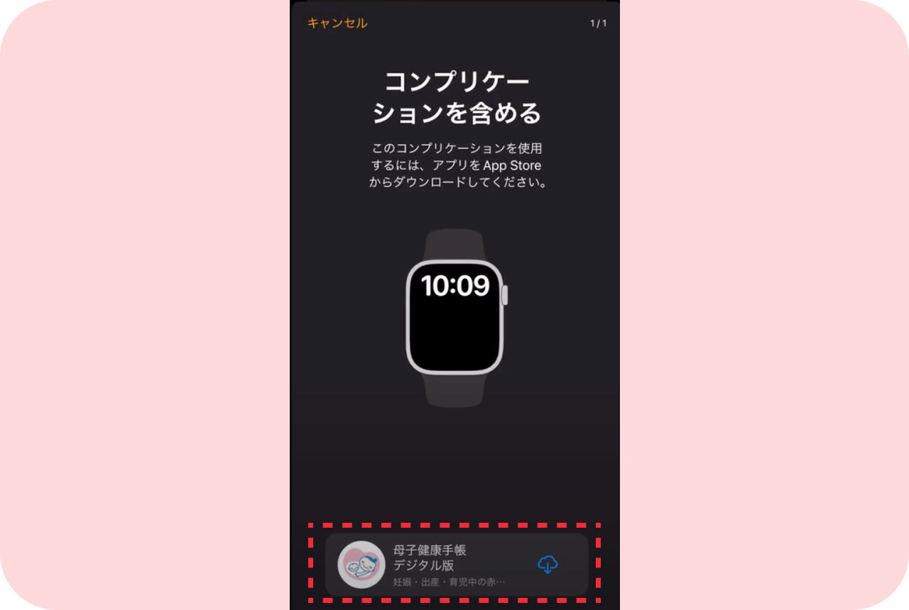 4. 「コンプリケーションを含める」の画面で母子健康手帳デジタル版アプリをダウンロード