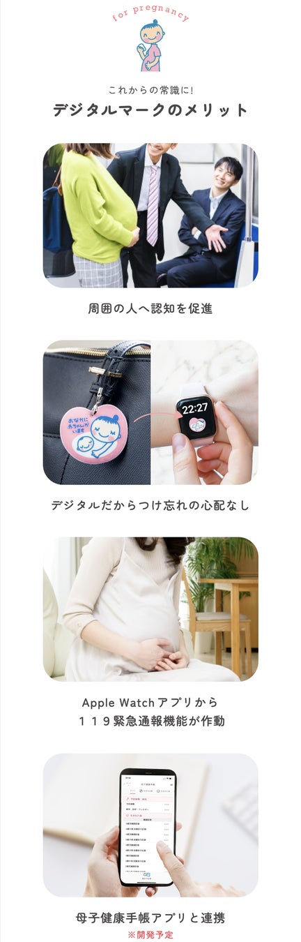 妊産婦支援アプリ「母子健康手帳デジタル版」を運用しているNPO法人ひまわりの会(会長:野田聖子 東京都千代田区)は、妊婦の方々やその周囲の方々のために、新たなデジタルサービス「デジタルマタニティマーク」を発表いたします。このサービスは、Apple Watchを通じて妊婦の状態を周囲にさりげなく、かつわかりやすく表示し、公共の場でのサポートを促進することを目的としています。