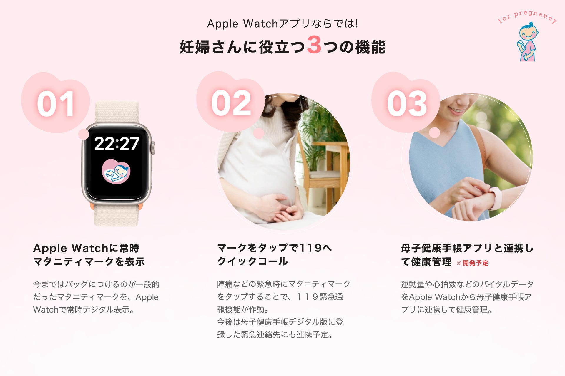 Apple Watchの画面に表示されるデジタルマタニティマークは、デザイン性にも優れており、妊婦のファッションや日常生活に自然に溶け込み、よりスマートなライフスタイルを実現できます。