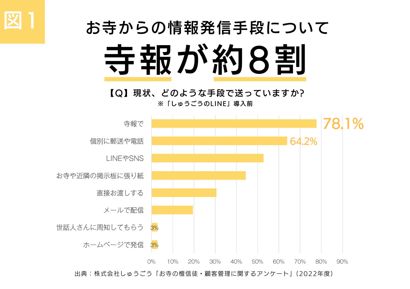 昨今、寺社からのおもな情報発信手段は寺報ですが(図1)、「しゅうごうのLINE」を活用することで、郵送物に比べて費用も準備工数もかけずに、確実に情報をお届けすることができます。住所違いで返送されることもありません。