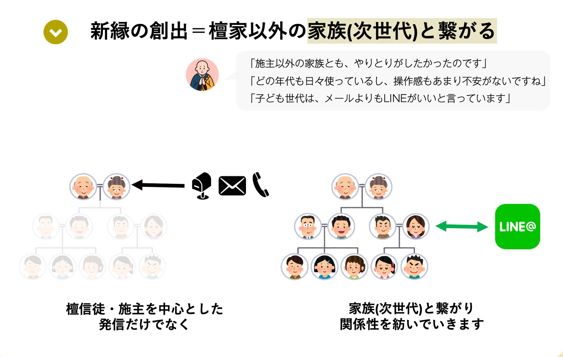 檀信徒さんのみならず、地域や新縁、子や孫世代までもをつなぐ仕組みが、寺社に支持されています。