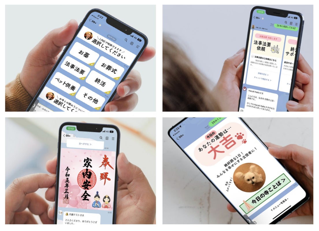 新たにアプリをダウンロードする必要はありません。各寺社のLINE公式アカウントを友だち追加するだけで、すぐに利用できます。日本人の9割以上が日々使用する「LINE」*1のなかに、まるでオリジナルアプリのような便利な機能を搭載して、ユーザーにお届けすることができます。