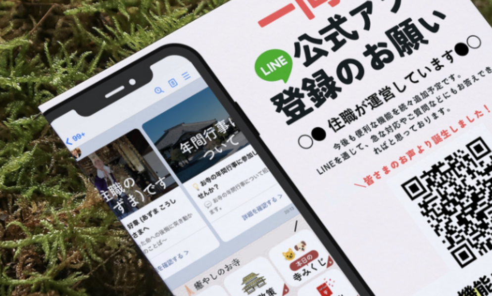 さらに、お友だち登録数を増やすためのサポート(例;フライヤー作成)も付随しています。檀信徒さんはじめ、次世代との関係性を深めるために、継続して発信できる仕組みを整えています。
