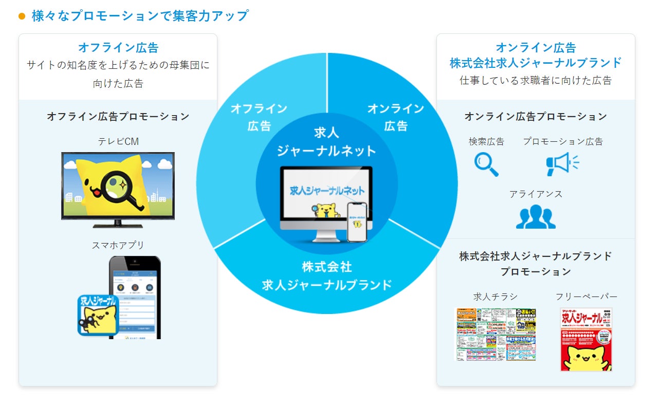 今回HRアドプラットフォームと連携することで、より多くの求職者と企業様のマッチングを目指しております。本連携により「求人ジャーナルネット」はより多くの求人情報を掲載することになり、今まで以上に求職者が求めている求人情報と出会いやすくなるよう支援が可能になります。また、「HRアドプラットフォーム」では入札者の案件が出稿される掲載先が増えることにより、企業の求めるペルソナに応じた応募を獲得しやすくなります。