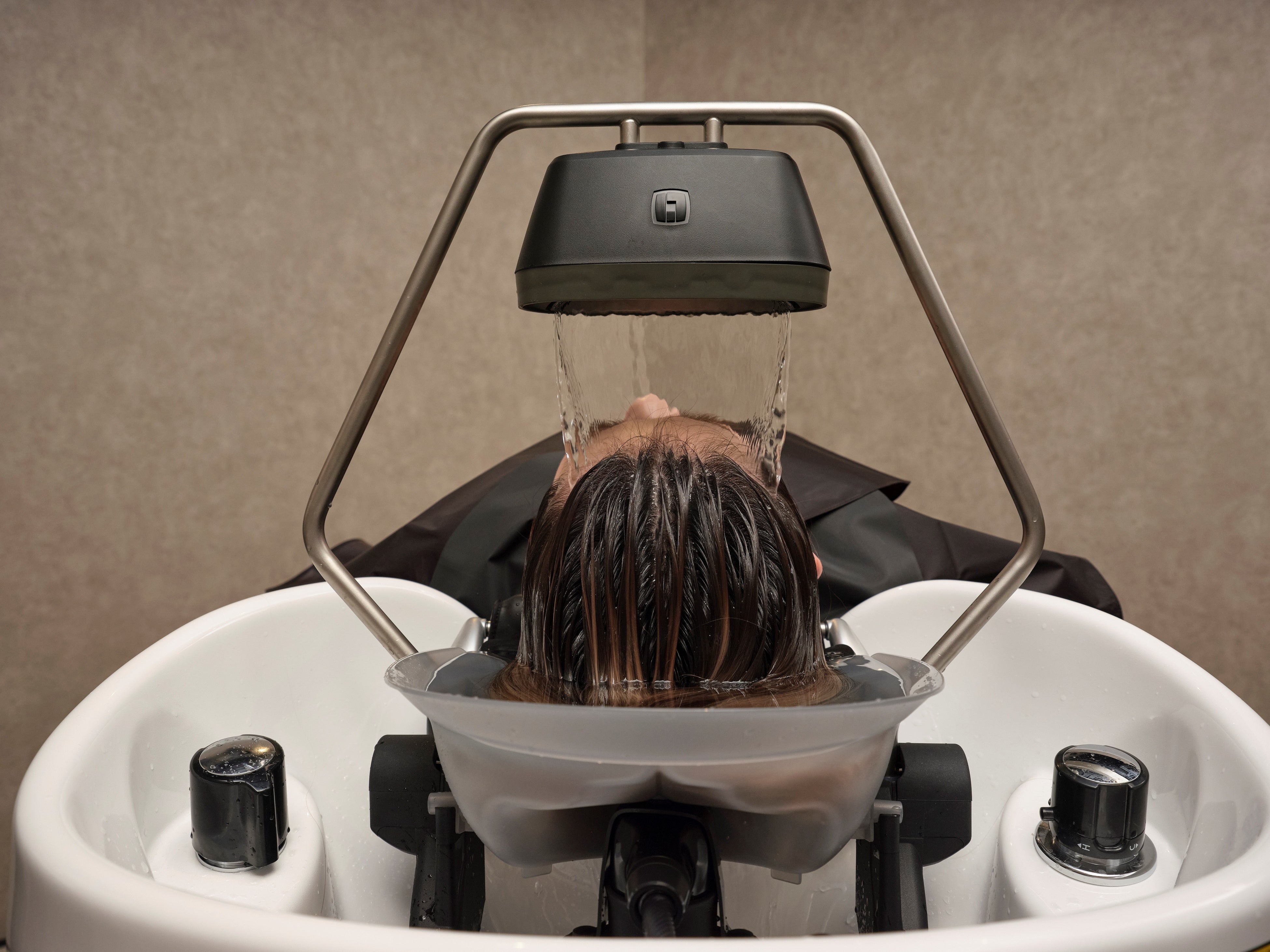 (ヘッドスパ、頭浸浴のイメージ写真。温水と冷水を交互で流す“頭皮サウナ”で頭皮の血行促進効果も。)