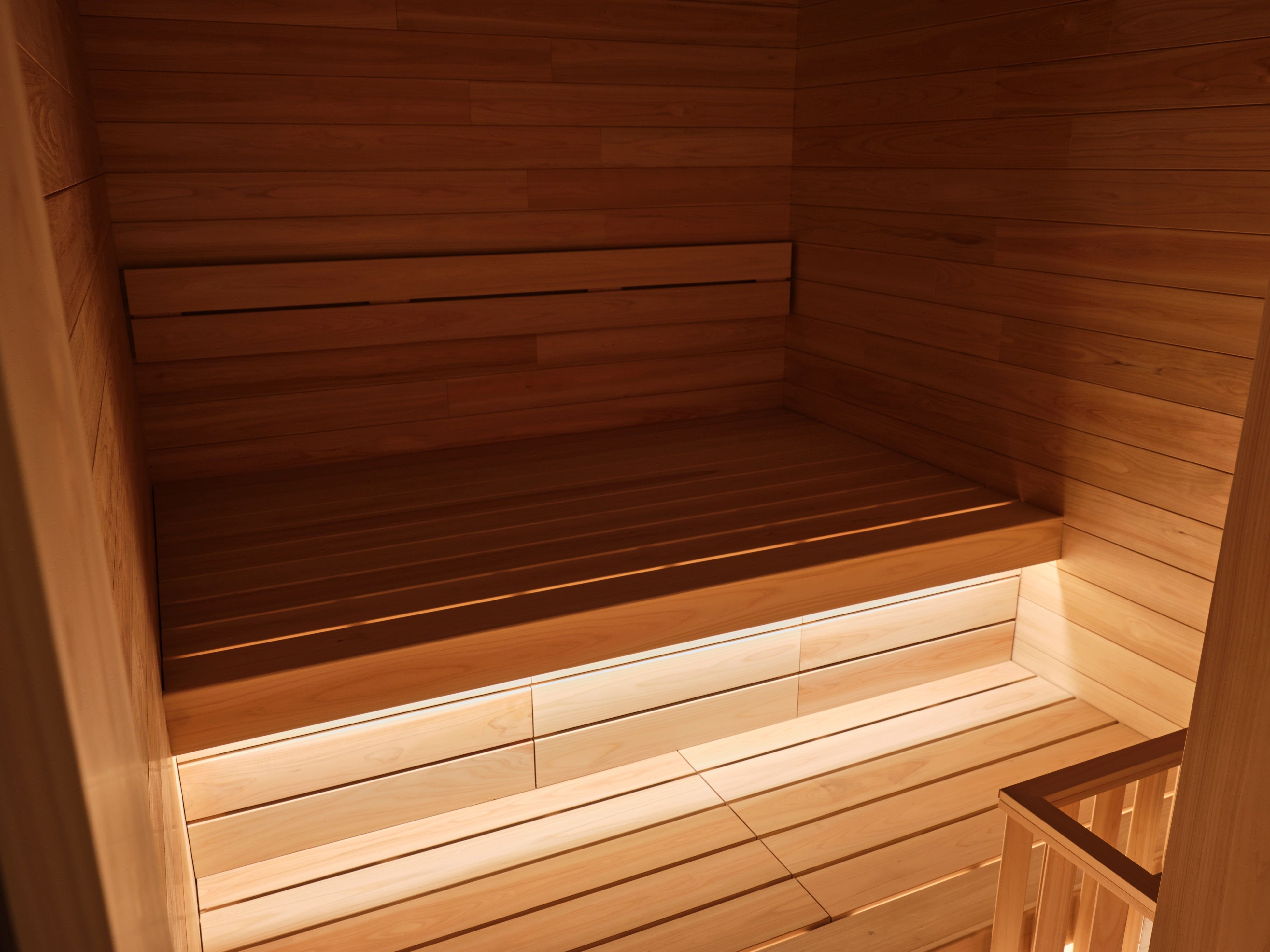 女性専用ルームは全部で2部屋用意しております。その中でも【Viisi】は、男性サウナ室よりも奥行きのある座面に設計しております。とても広々した座面になっているため、サウナ室の中でヨガやストレッチなどをしていただくことができます。初期温度設定も低めとなっており、お客様のご要望に合わせてサウナ時間をカスタマイズすることが可能です。
