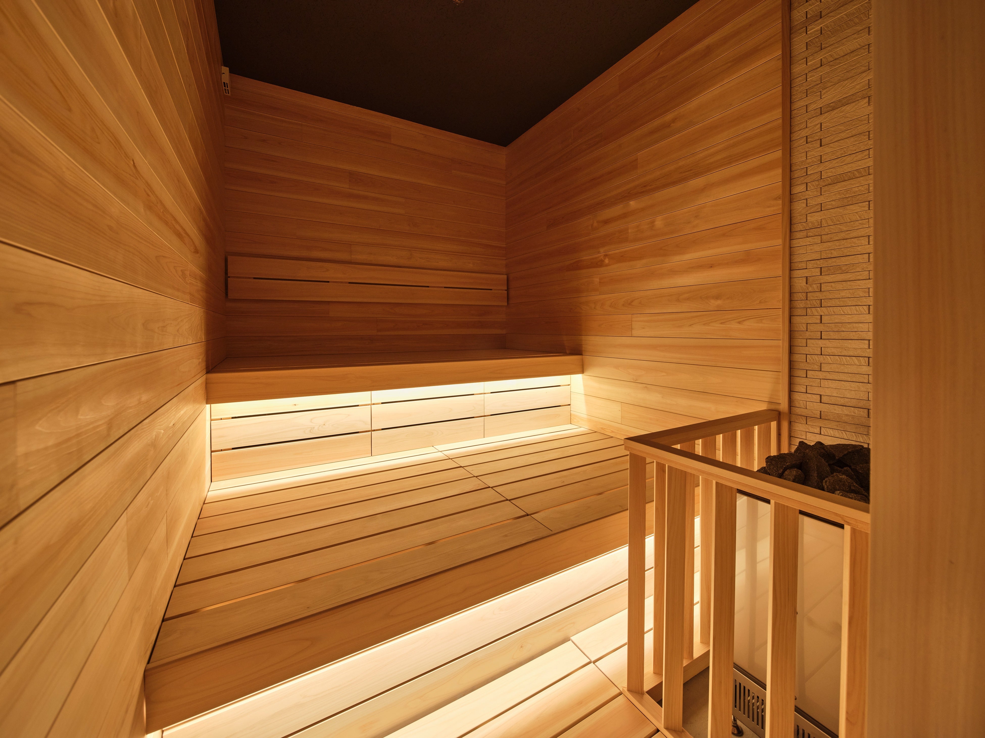 当施設のサウナ室は全室セルフロウリュができることに加え、サウナ室内の温度も100度以上まで調節が可能なため、お客様のお好みに合わせたサウナ時間をお楽しみいただけます。当施設こだわりのサウナ室は、とても密閉感があり新しいヒノキの香りに包まれながら集中してサウナに没入できること間違いなしです。今後、お好みの香りを加えたセルフロウリュをお楽しみいただけるサービスも導入する予定です。お客様の心身のお悩みにあったサウナの入り方や、そもそもサウナがどんな効果をもたらすのか、サウナに関する知識なども今後発信していきます。
